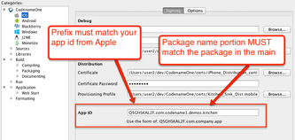 codename1.packageName, and codename1.ios.appid,